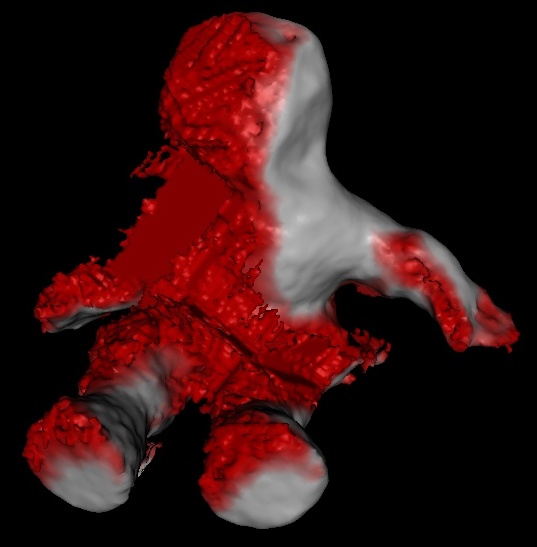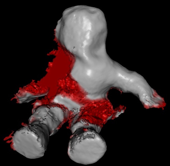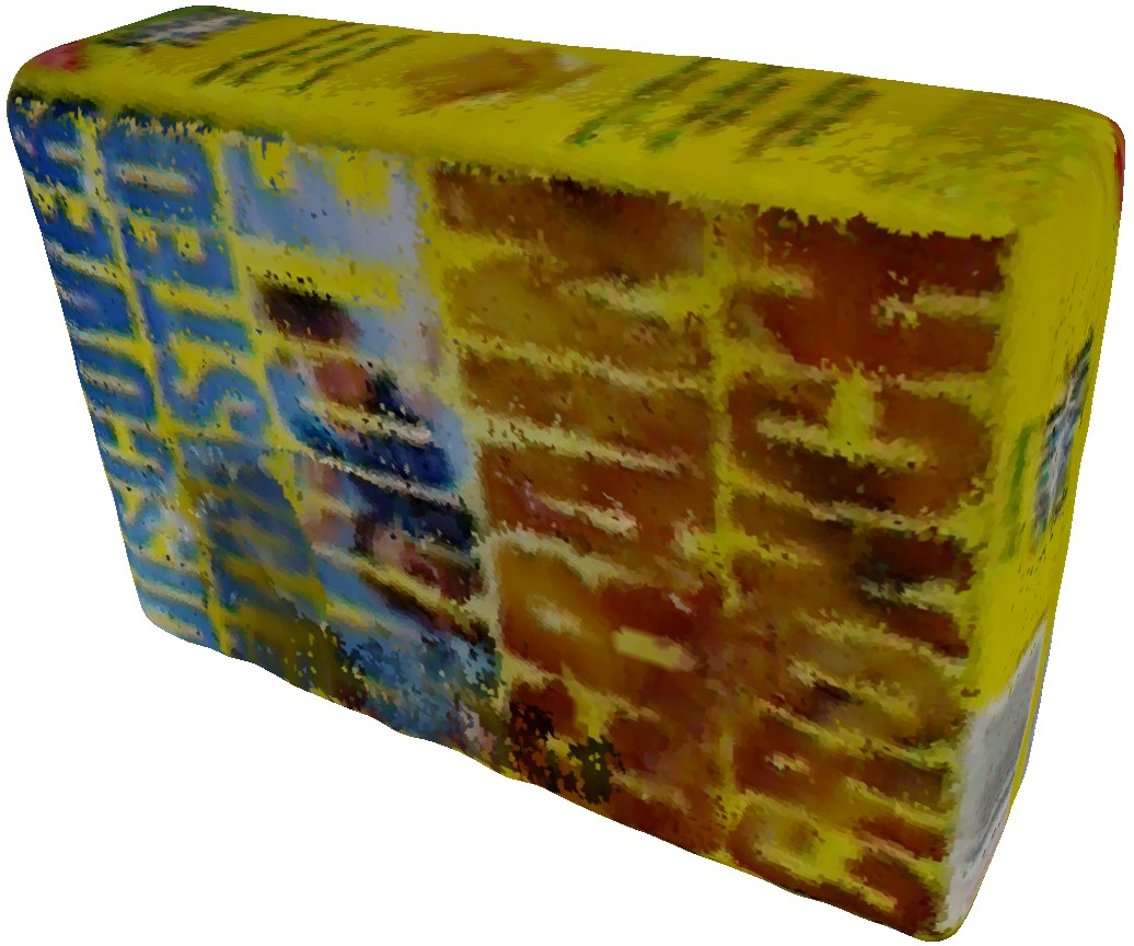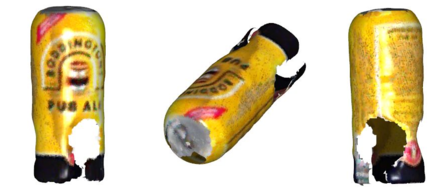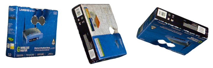Next are examples of object models before and after next best view planning. Red areas indicate low confidence regions, having few to no observations (Click for 3D ply models).