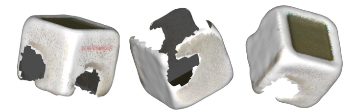 They have been converted to meshes using the Poisson Reconstruction algorithm.