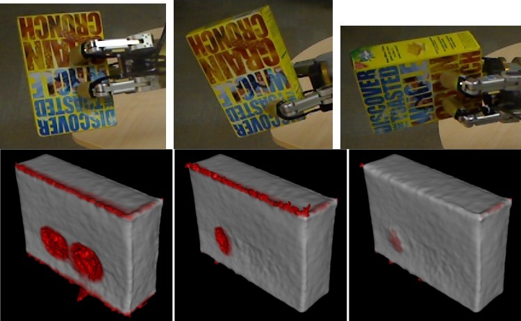 Shown below are 3 grasps of a box (with corresponding confidence models) as well